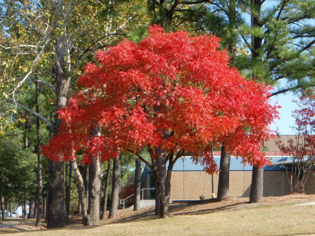 - Chinese Pistache (Pistacia chinensis) Growth Rate: 2-3+ feet/year (moderate-fast) Mature Size: 30-60 feet tall Why it fits the South: Heat/drought-tolerant; vivid red-orange fall; pest-resistant. Drawbacks: Smaller canopy.